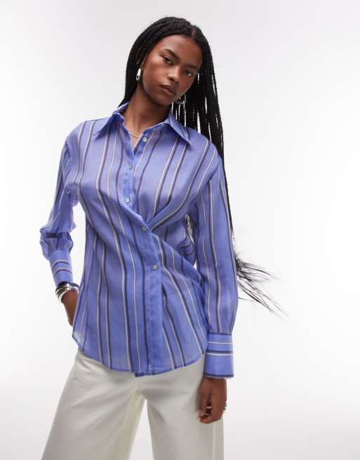 Mango - Overhemd met asymmetrisch knoopdetail in blauwe streep