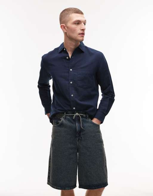 Mango - Overhemd van linnenmix met lange mouwen in marineblauw