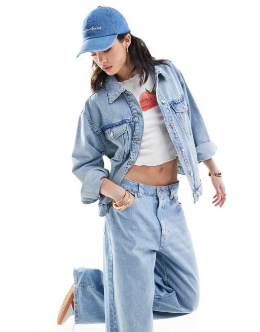 Mango - Oversized denim jack in lichtblauw