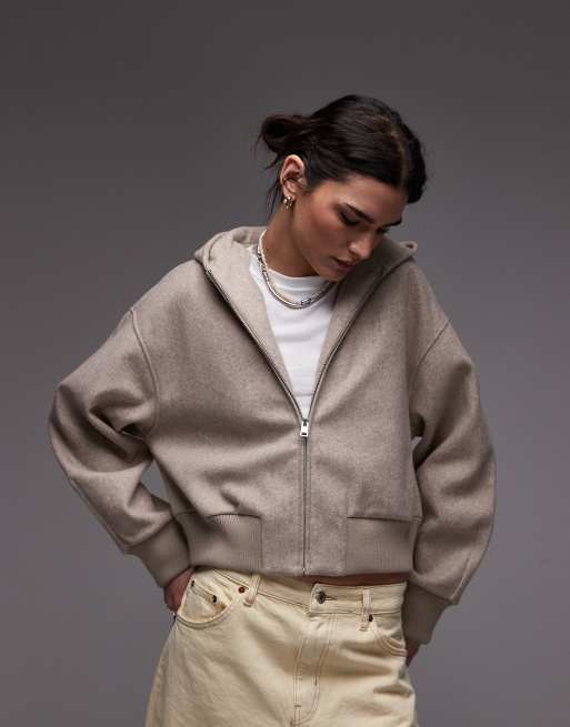 Mango - Oversized zachte hoodie met ritssluiting in beige