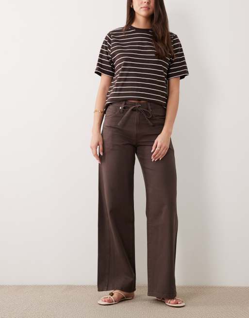 Mango - Rachel - Jeans met rechte pijpen en trekkoord in bruin