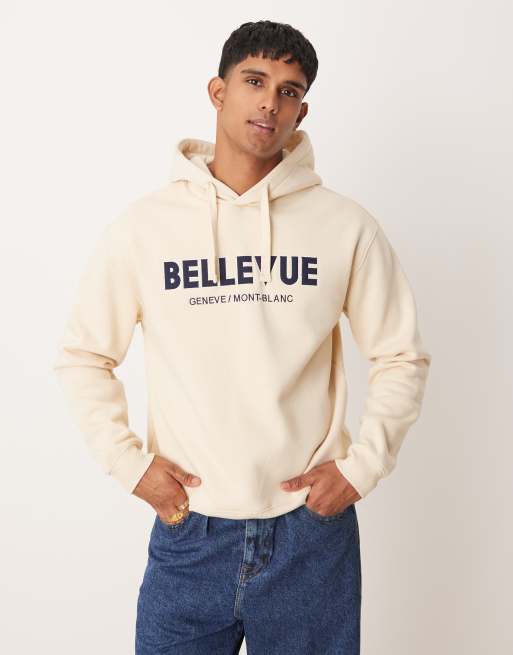 Mango - Regular-fit hoodie met 'Bellevue'-print in crème