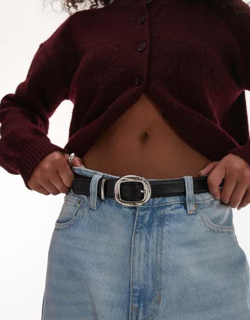 Mango - Riem met ronde gesp in zwart