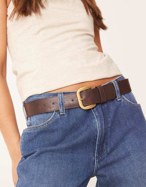 Mango - Riem van imitatieleer met grote gouden gesp in bruin