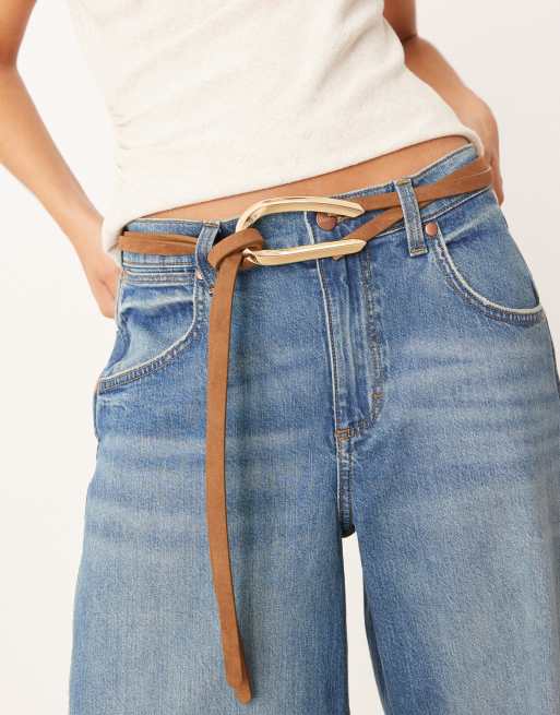 Mango - Riem van leer met gouden ringen in bruin