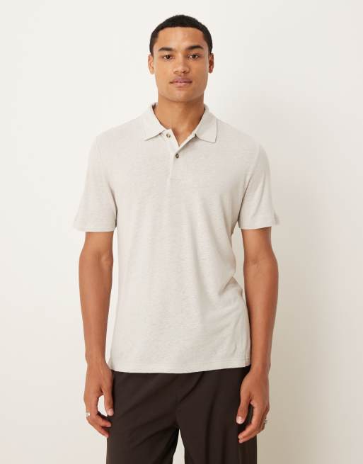 Mango - Ruimvallend poloshirt van linnenmix met korte mouwen in naturel