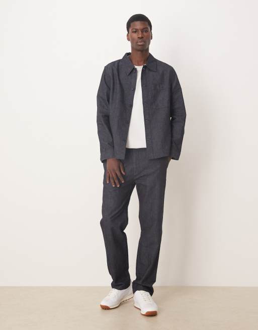 Mango - Ruimvallende co-ord set van katoen met shacket en jeans in indigo