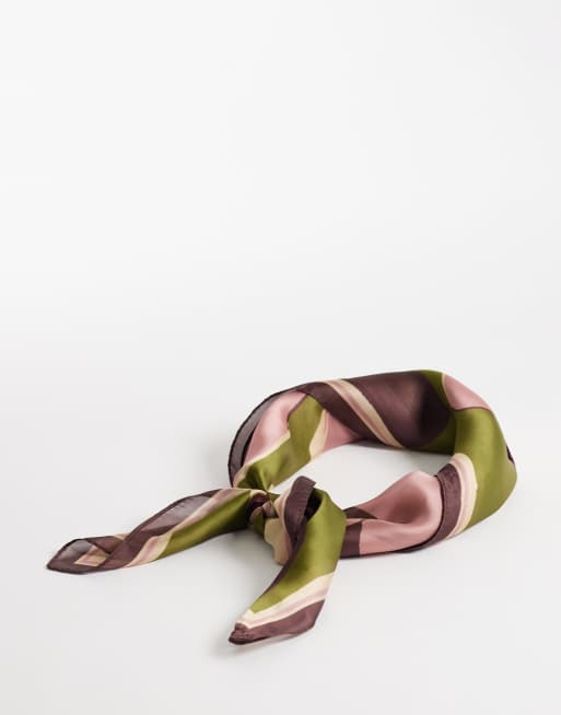 Mango - Satijnen sjaal voor tassen met abstracte bloemenprint in groen