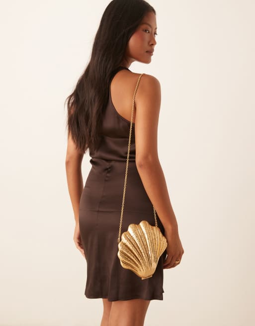 Mango - Schelpvormige clutch in goud