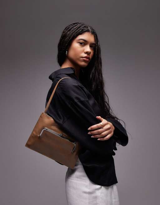 Mango - Schoudertas met vak aan de voorkant in lichtbruin