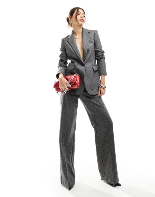 Mango - Set van blazer en broek met figuurnaden in grijs