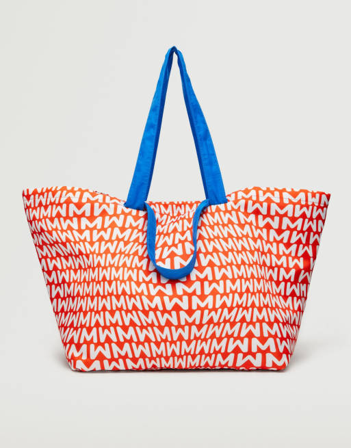 Mango - Shopper met logo-detail en contrasterende banden in oranje