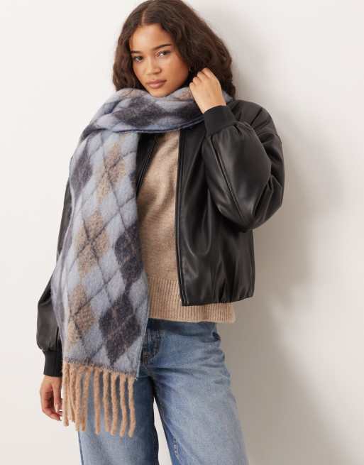 Mango - Sjaal met kwastjes en argyle-ruiten in blauw