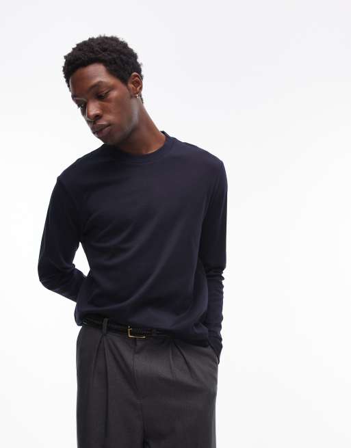 Mango - T-shirt met lange mouwen in marineblauw