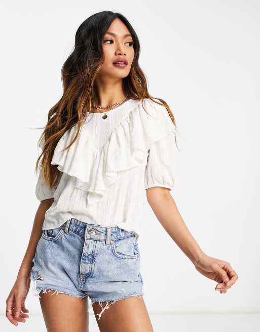 Mango - T-shirt met ruches in wit
