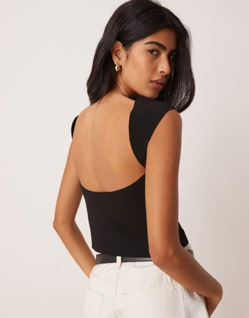 Mango - T-shirt van gladde stof met kapmouwtjes en open achterkant in zwart