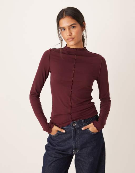Mango - Top met geschulpte rand en lange mouwen in bordeauxrood