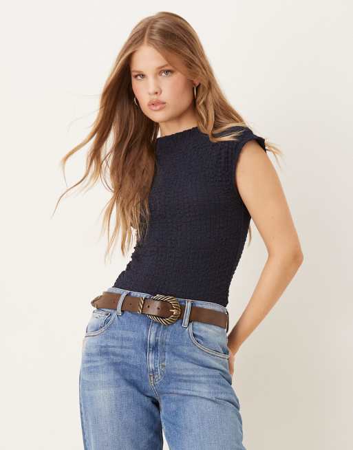 Mango - Top met kapmouwtjes en textuur in marineblauw