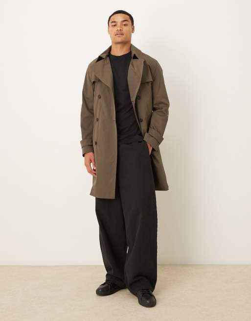 Mango - Trenchcoat van katoenmix met ceintuur in kaki