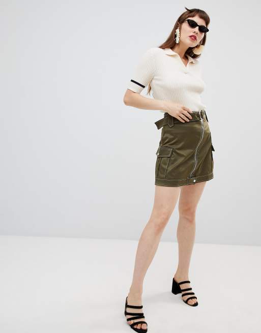 Mango - Utility rok met rits in kaki