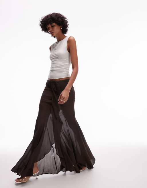 Mango x Supriya Lele - Soepele maxi rok met ruches op de voorkant in chocoladebruin