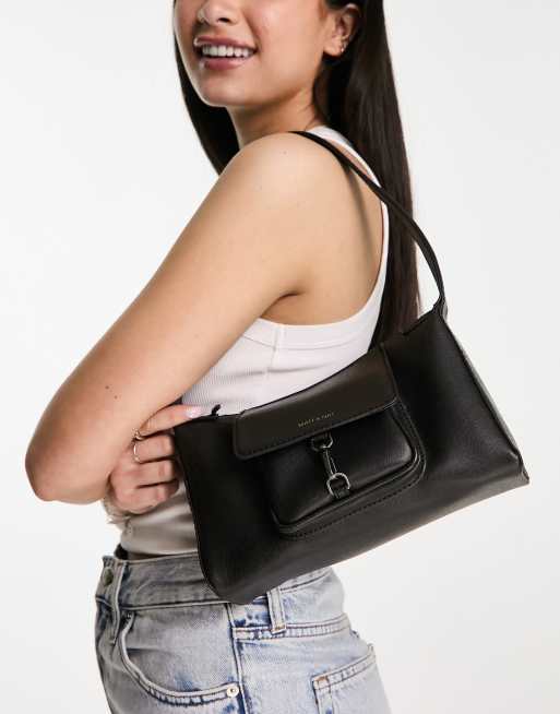 Matt & Nat - Loti - Schoudertas met zakdetail in zwart imitatieleer
