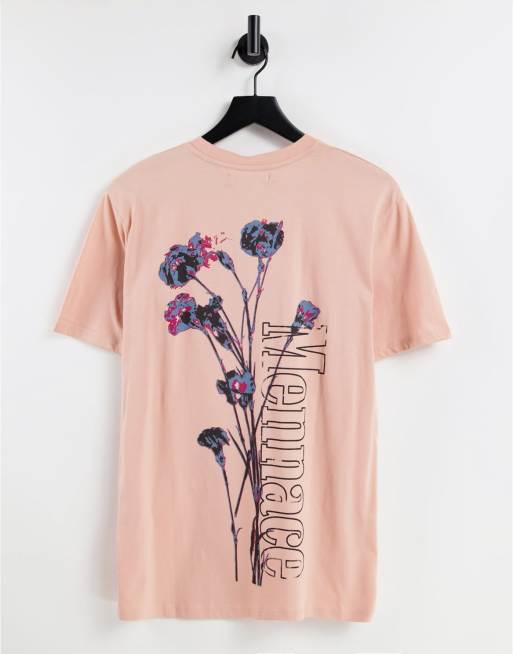 Mennace - T-shirt met bloemenlogo op de achterkant in roze