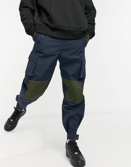 Mennace - Utility cargobroek met patchwork vlakken in marineblauw