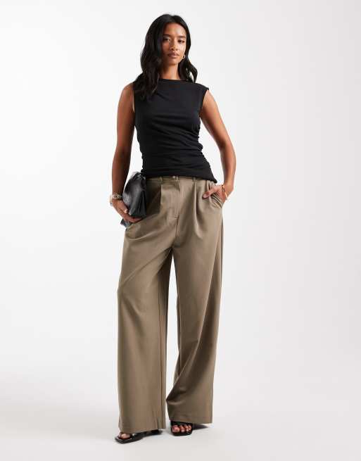 Miss Selfridge Petite - Elegante broek met wijde pijpen in kaki