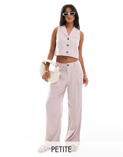 Miss Selfridge Petite - Elegante broek van linnenmix met wijde pijpen oudroze
