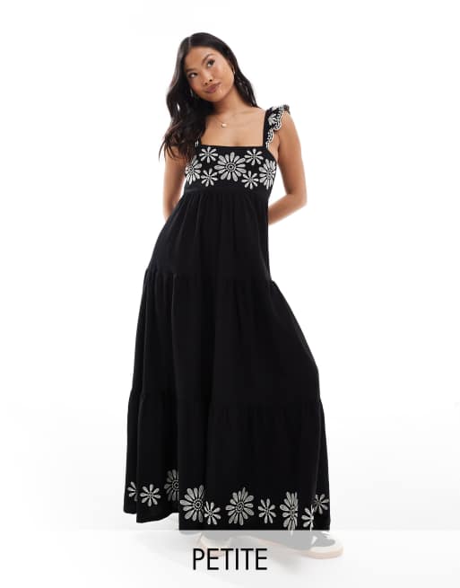 Miss Selfridge Petite - Maxi jurk met stroken en geborduurd detail in zwart