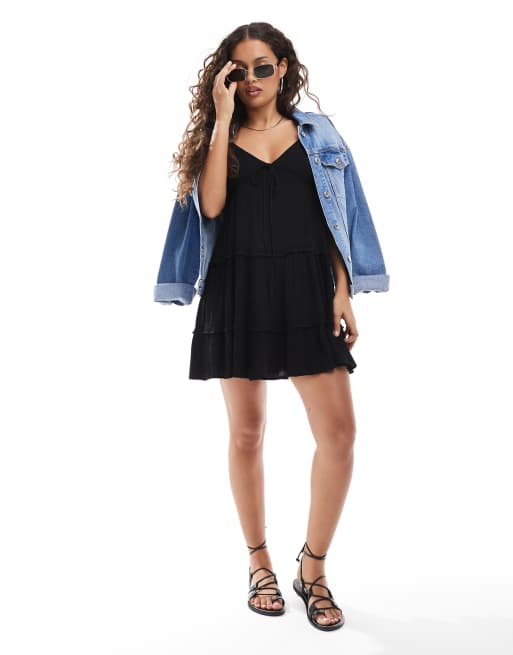 Miss Selfridge Petite - Mini-slipdress met kaasdoek en stroken in zwart