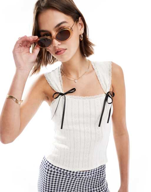 Miss Selfridge - Ajourgebreid hemdje met strikjes in ivoor