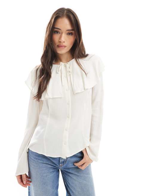 Miss Selfridge - Cape-blouse met gestrikte voorkant in ivoorwit