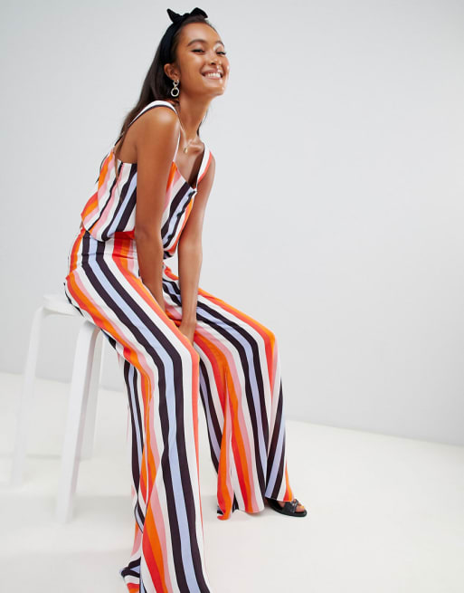 Miss Selfridge - Combi-set regenboog gestreept cami en broek met knopen