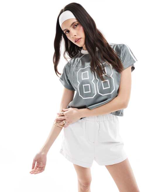 Miss Selfridge - Cropped football shirt met grafische print in grijs