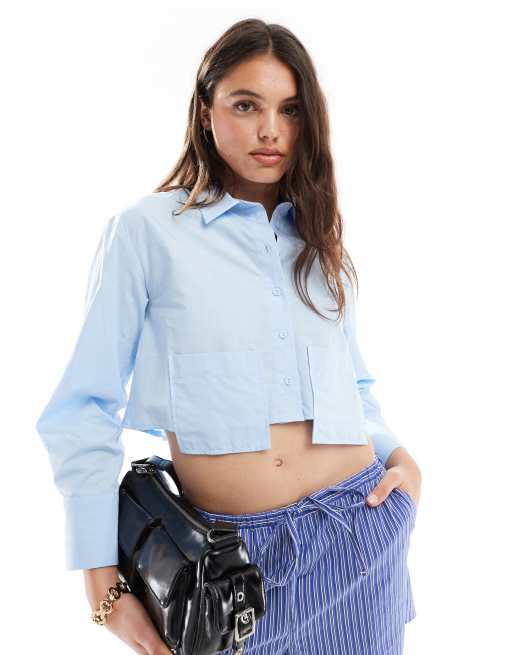 Miss Selfridge - Cropped poplin overhemd met verlaagde zakken in blauw