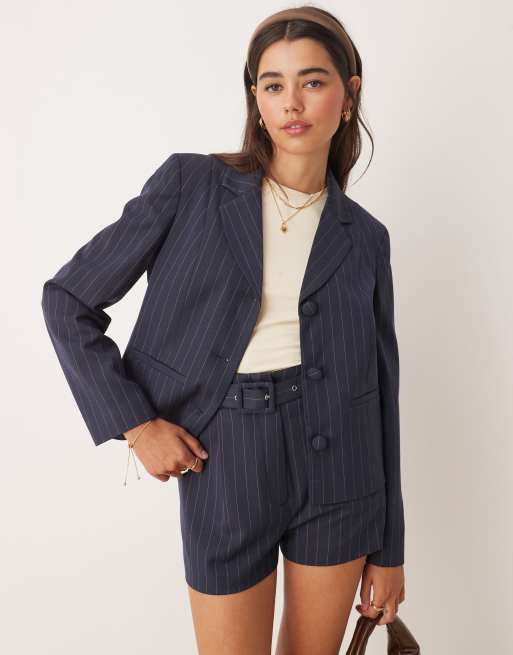 Miss Selfridge - Elegante blazer met krijtstreep in marineblauw, deel van co-ord set