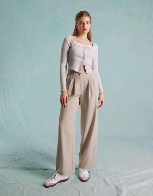 Miss Selfridge - Elegante broek met wijde pijpen in grijs met krijtstreep