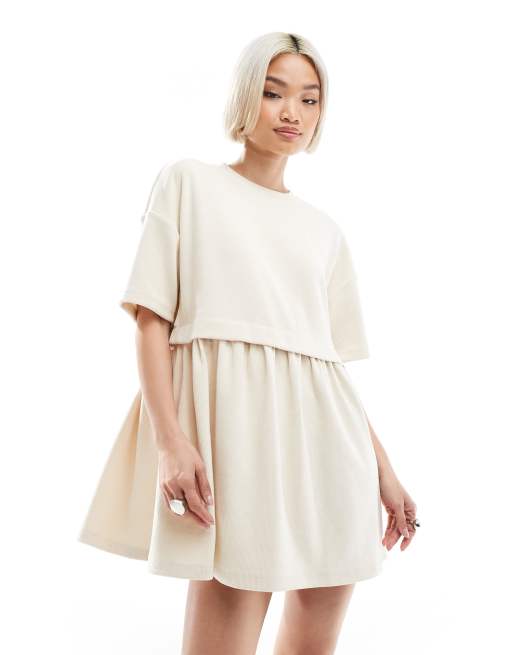 Miss Selfridge gelaagde, aangerimpelde jurk met ribbels en korte mouwen in ecru