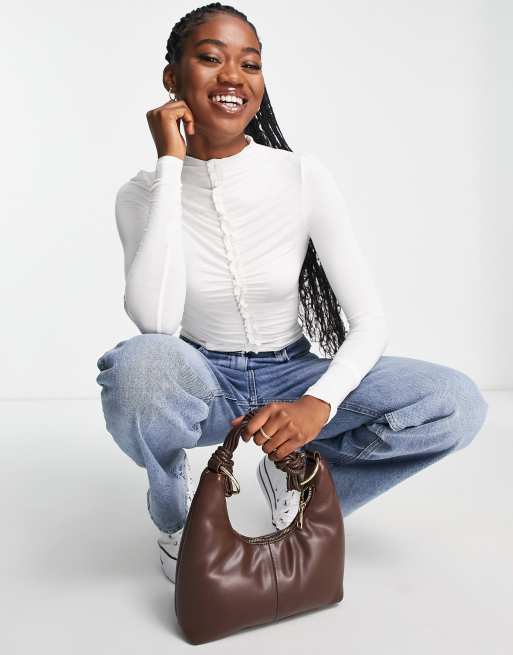 Miss Selfridge - Gerimpelde strakke crop top in ivoorwit