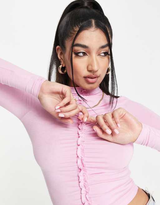 Miss Selfridge - Gerimpelde strakke crop top in roze