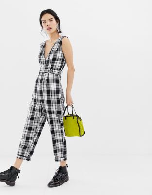 Miss Selfridge - Geruite jumpsuit met gekruiste banden aan de voorkant