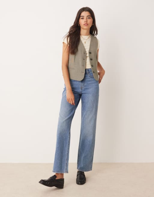 Miss Selfridge - Jeans met rechte pijpen en hartvormige zakken in blauw met wassing