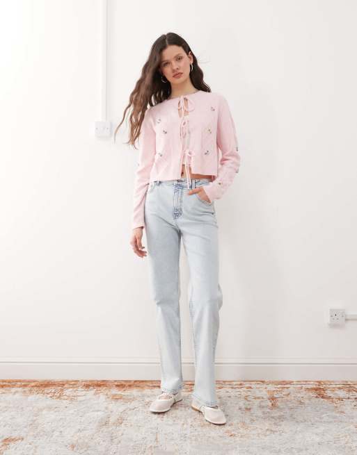 Miss Selfridge - Jeans met rechte pijpen en hartvormige zakken in ijs bleekwassing