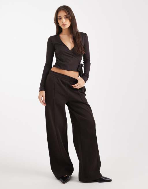 Miss Selfridge - Joggingbroek met wijde pijpen in chocoladebruin