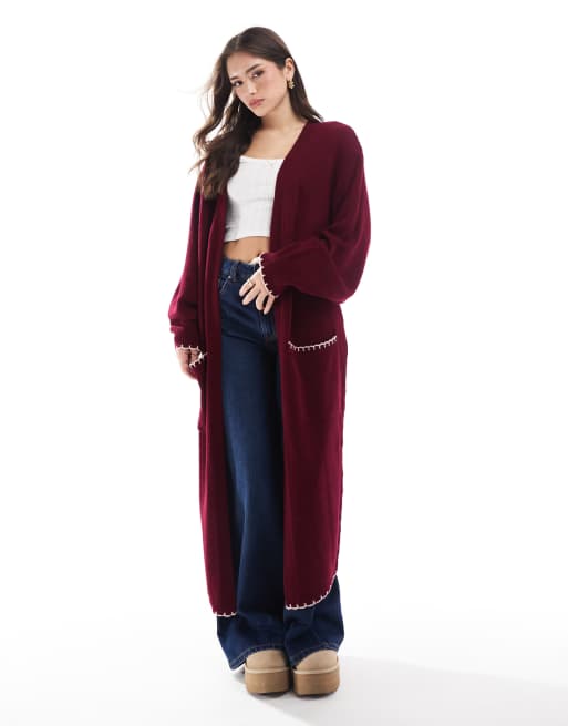 Miss Selfridge - Lang vest met contrasterende festonsteek in roze en bordeauxrood