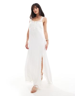 Miss Selfridge - Maxi slipdress met textuur en inzetstukken in crème