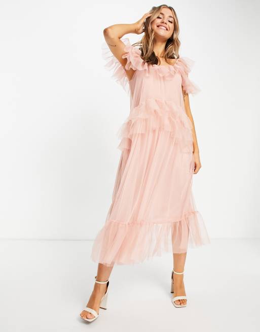 Miss Selfridge - Midi jurk van tule in roze
