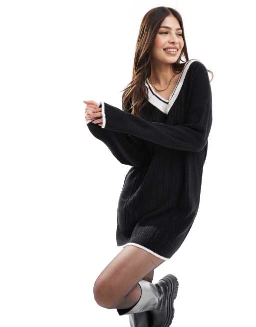 Miss Selfridge - Mini-jurk in varsity-stijl met V-hals in zwart